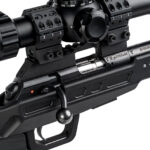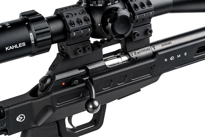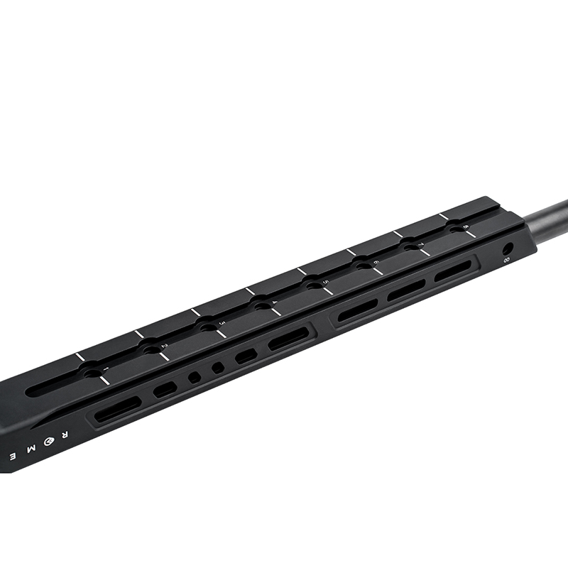 • Lekki przedni profil z lekkiego stopu wyposażony w boczny system M-LOK® i mocowania QD (Quick Detach), ze zintegrowaną szyną typu Anschutz i zintegrowaną szyną Arca