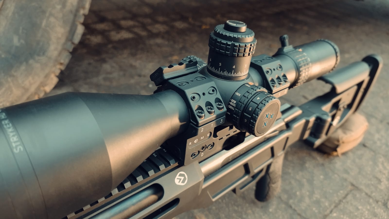 Luneta jest zamontowana na włoskim montażu monoblokowym bez skosu. Doskonale sprawdzi się tutaj także polski montaż z Firmy LAMBDA Precision czy znany SPUHR. Lambda posiada w swojej ofercie montaże o skosie 31 MOA. To szczególnie ucieszy strzelców, którzy z .22LR chcą pokonać cel na dystansie powyżej 300 m.