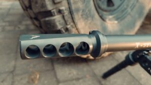 Prezentowana broń posiada fabryczny cztero-komorowy hamulec wylotowy Victrix ProAngle Gladio X dedykowany do tego modelu. Hamulec to ważne urządzenie, pozwala na kontrolowanie celu podczas strzału. W przypadku poprawki lub przeniesienia celownika na kolejny cel mamy do czynienia z przewidywalnym zachowaniem broni. Efektywny hamulec w połączeniu z odpowiednią i odpowiednio rozmieszczoną wagą to już połowa sukcesu.