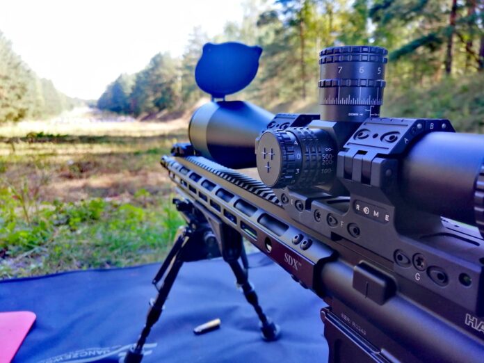 Zakres powiększenia 4,5-30×56. Parametr ten pozwala na wykonywanie strzelań w różnych warunkach i na różne dystanse. Siatka celownicza jest umieszczona w pierwszym planie FFP. Parametry i funkcjonalności jakie posiada siatka celownicza opiszemy w późniejszej części artykułu. Pole widzenia lunety przy powiększeniu 4,5 to 8,2 m na dystansie 100 m. Przy pełnym trzydziesto krotnym powiększeniu jest to nadal 1,3 m.